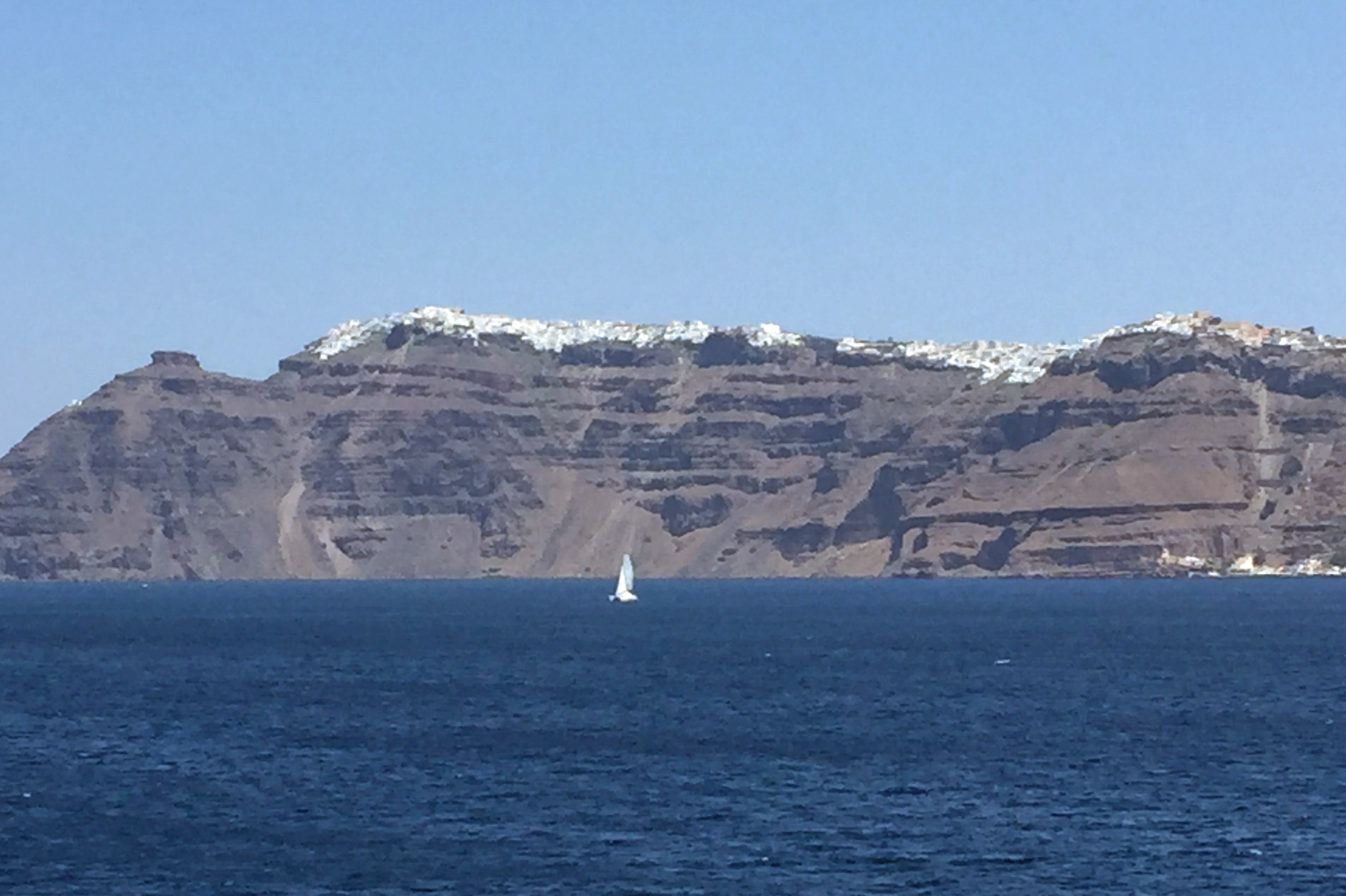 Approaching Santorini by ferry, my first thought was, “What beautiful snow-capped mountains!” Wrong! These were not mountains, but pure white buildings perched on top of this unique volcanic island.