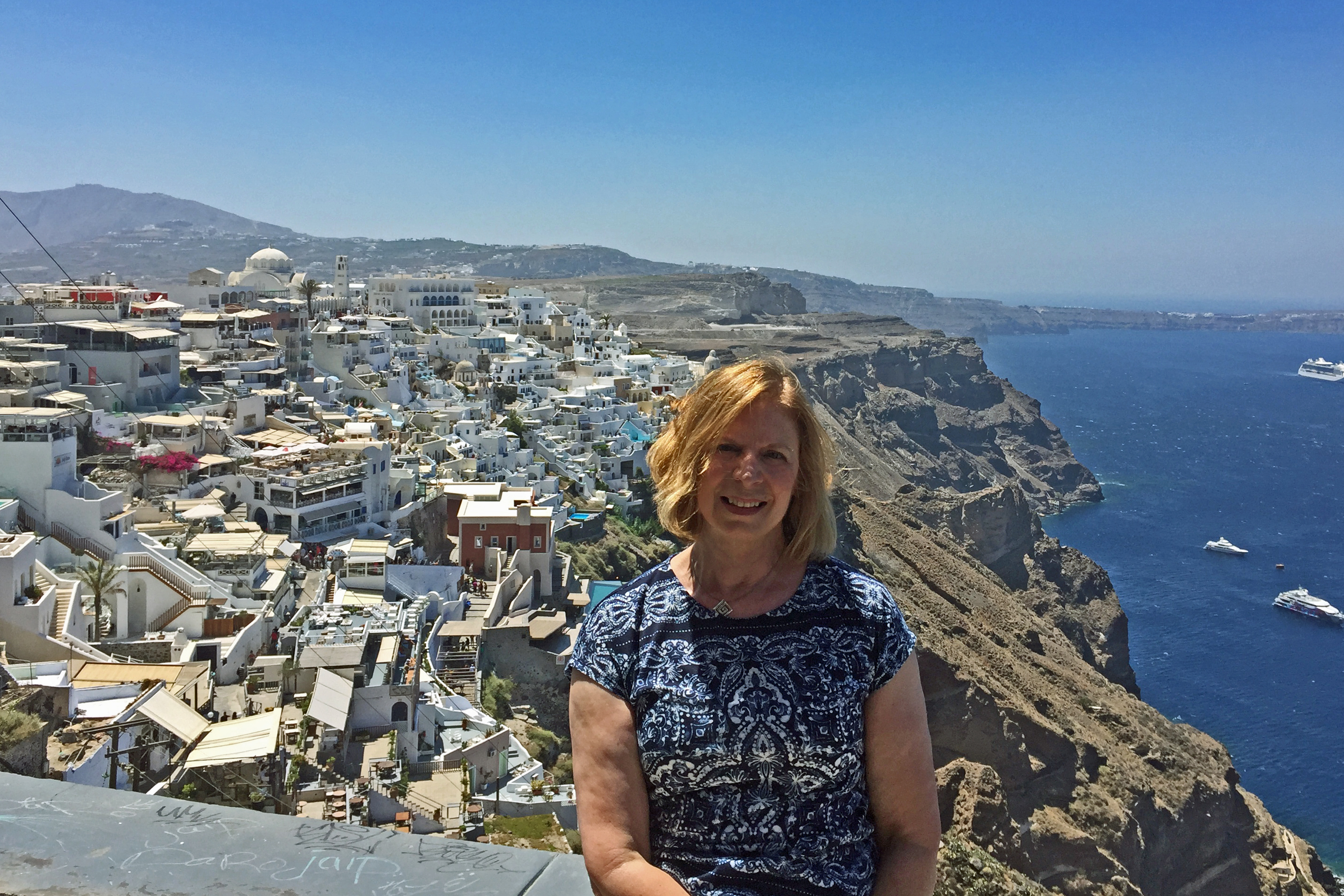 Hilltop view of Fira, Santorini, July 2016