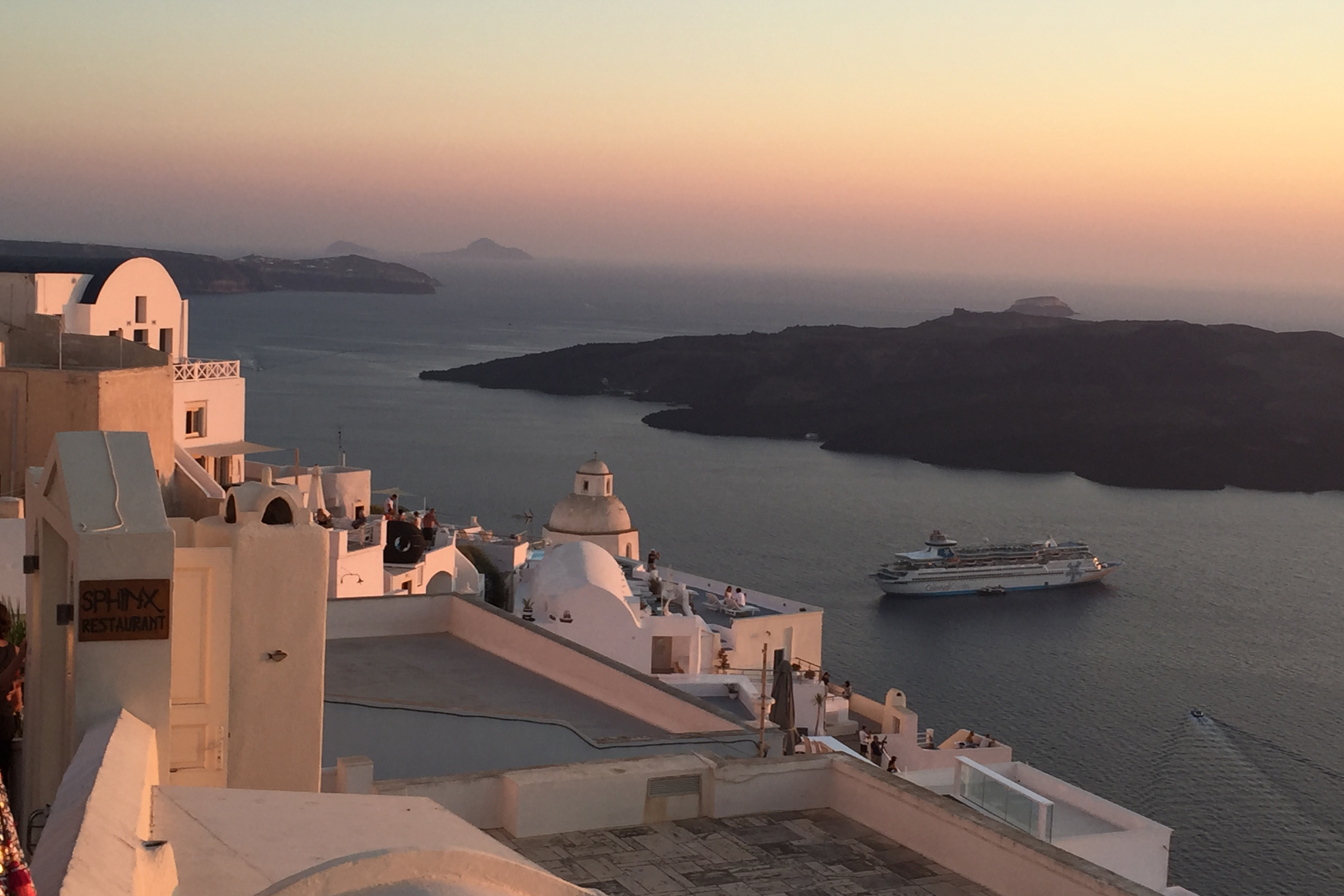 The serenity of Fira at sunset. Santorini, July 2016