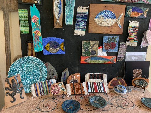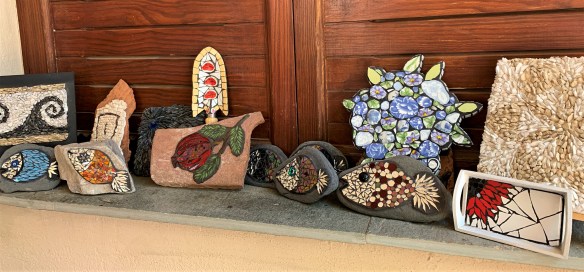 Dimitra told me that each stone, tile or other item, “speaks” to her and she creates a design unique to that item’s shape, size and color. As a quilter, I understand exactly what she means. An artist doesn’t force her will upon nature; instead, she allows nature to direct the creative process. And in the end, a unique work of art is formed.