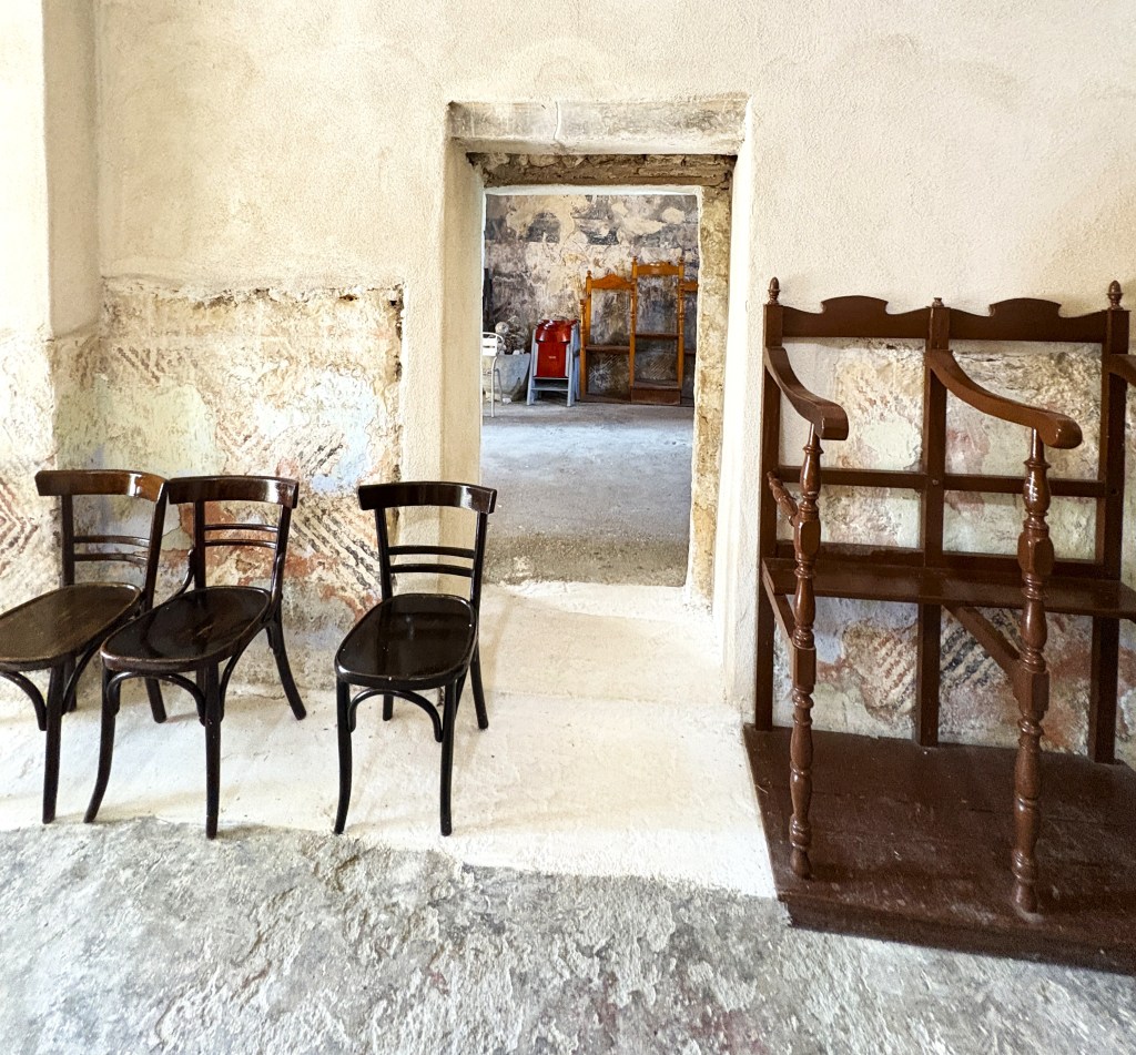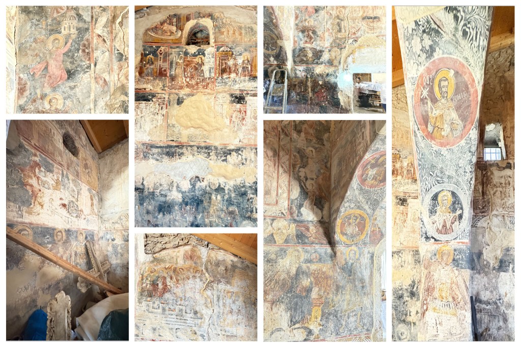 Looking from the church into the antechamber at the back, we see the frescoes that remained untouched.