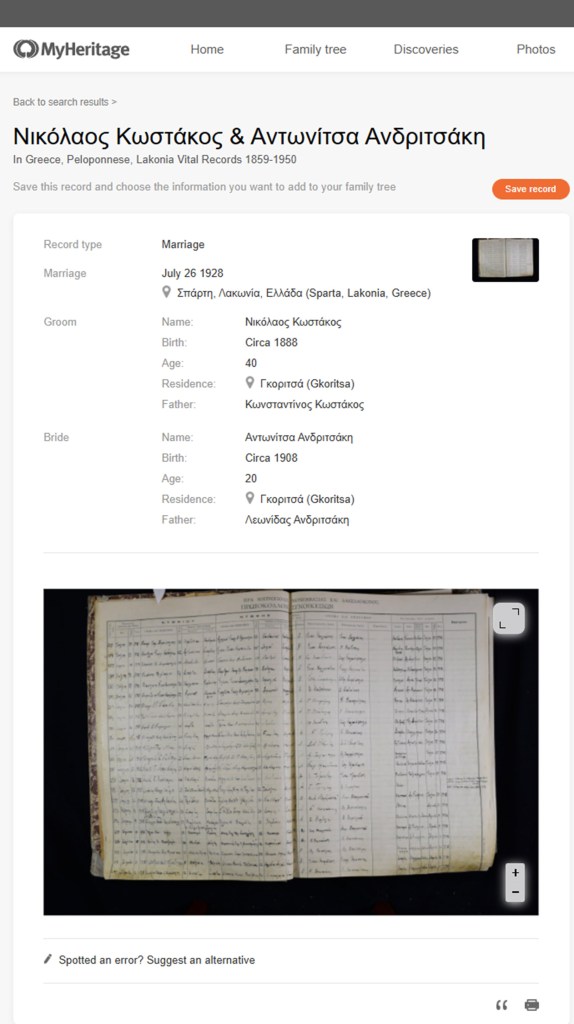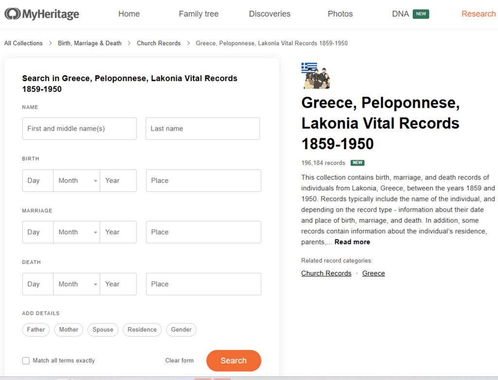 On March 10, 2025, part three of the miracle happened: today’s technology enabled the publication of the digital images and name indexes in both Greek and English. The records are now accessible at MyHeritage here: https://www.myheritage.com/research/collection-20905/greece-peloponnese-lakonia-vital-records-1859-1950.