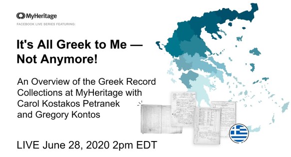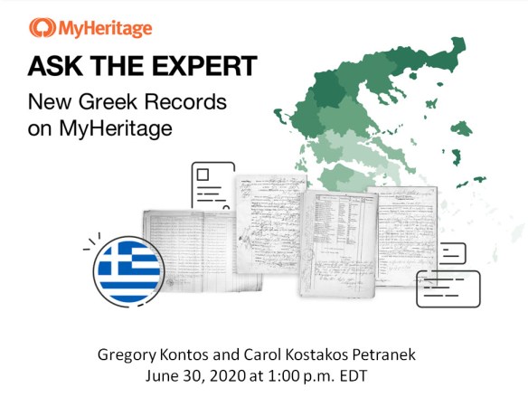 There will be two events where Gregory Kontos and I will discuss these records. Access to the events is free, and will be broadcast through the MyHeritage FB page.