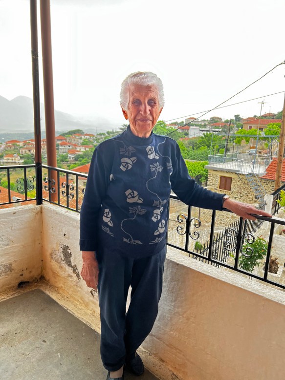 Georgia Zacharakis Dariotis on the balcony of her home Theologos, June 1, 2023