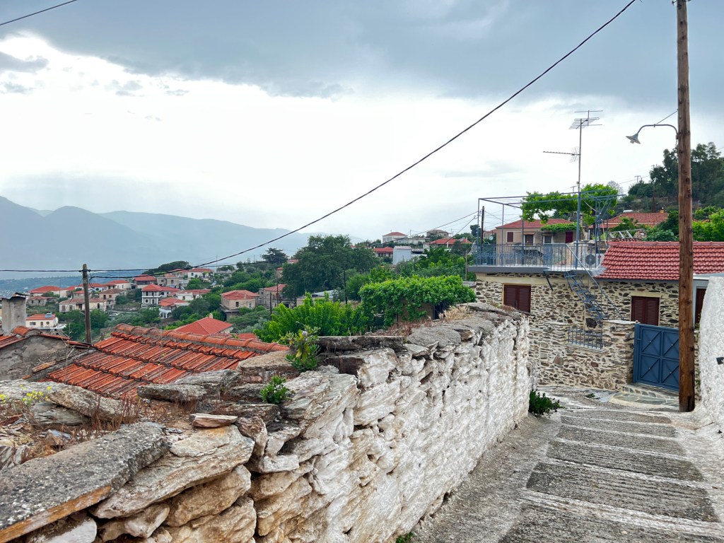 The homes of the families are constructed of stone, and they are literally built into the mountainside. Houses remain in families for generations. They are beautifully maintained and constantly being updated with modern conveniences. Living on a mountain means that there are steps everywhere, and they are steep! You can’t leave your house, or enter another, without walking up a flight. The village roads are precipitous and narrow, yet people are adept at maneuvering and parking their cars and trucks. The plateia appears to have the only flat surface in the village.