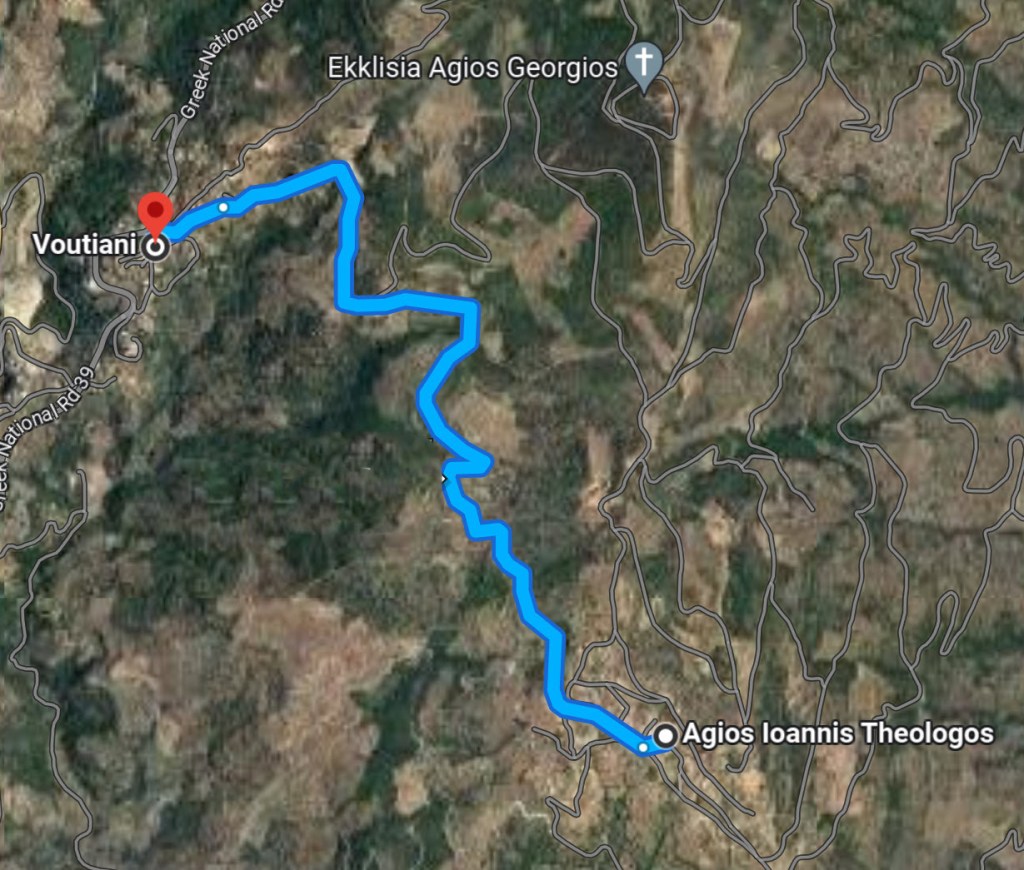 Through her reminisces, Georgia brought the past into the present. Village life was as rugged as its mountain. Transportation was by horse or donkey. It was not until 1970 that a narrow, switchback, paved road to Theologos was constructed. Prior to then, people rode animals or walked 4 km over winding mountain paths to the nearby village of Voutiani which had the only road on the mountain. It led to the city of Sparta where people could shop, conduct business, and access doctors or government facilities. There, horses and donkeys were kept in a χάνι (chani), a house with a large inner courtyard, where travelers and their animals camped and spent the night.1 After returning to Voutiani, people walked the 4 km back to Theologos, and this time their animals — or their arms — were laden with the goods and items purchased. The return trip was all uphill and done barefoot. Shoes were a luxury, not a necessity.