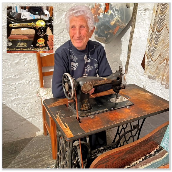 Seeing the hardships endured by village women, Georgia’s father encouraged her to make a better life. With his blessing and support, Georgia studied dressmaking in Sparta and became an outstanding seamstress. She made clothing for men, women and children. She also constructed clothing and vestments for priests, which are both ornate and meticulously embroidered. Georgia’s love of sewing has not subsided, and she took great joy in showing us her two sewing machines.